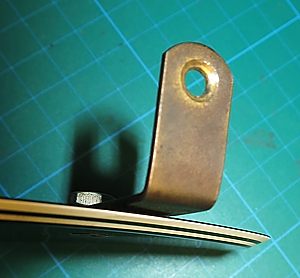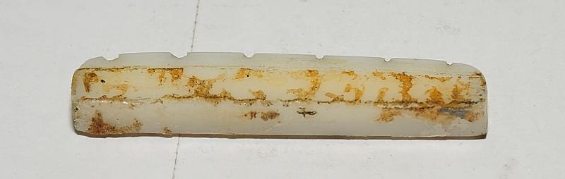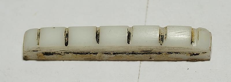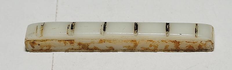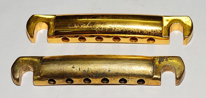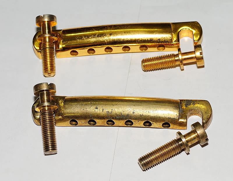 Las tuercas redondas de ajuste de altura tienen, como debe ser en esa época, la cara superior abovedada y no plana por las dos caras como las modernas. Esto tenía la ventaja de hacer más suave el balanceo natural del puente, permitiendo que este regresase más fácilmente a su posición respetando la afinación en guitarras con puentes tipo Bigsby.