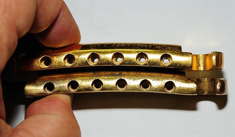 Los soportes de correa, de aluminio dorado, y sus tornillos también son originales.