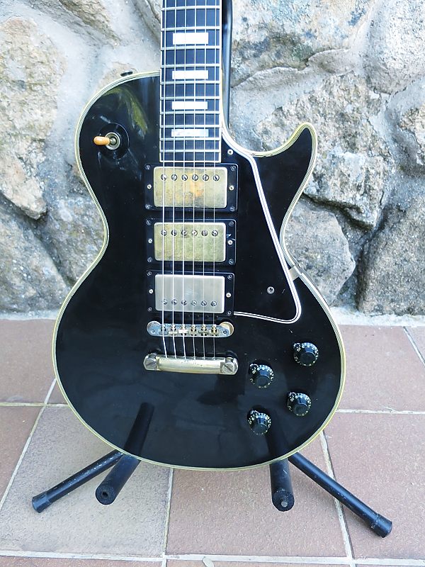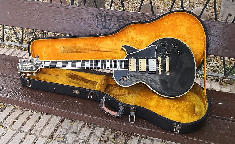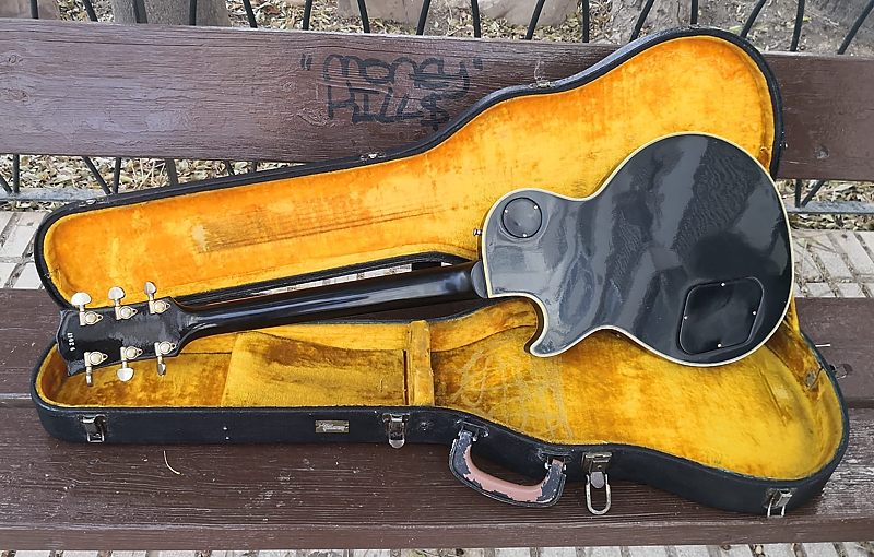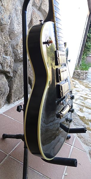 Esta vez tenemos una guitarra realmente especial, ¡extraordinaria!... Se trata de nada menos que de una auténtica Gibson Les Paul Custom de 1959. No es una reissue, es realmente de ese año tan mítico en este tipo de guitarras. Además se trata de un ejemplar completamente original que, exceptuando el acabado como veremos más adelante, tiene todos los componentes originales, cosa rara en una guitarra de esta edad.