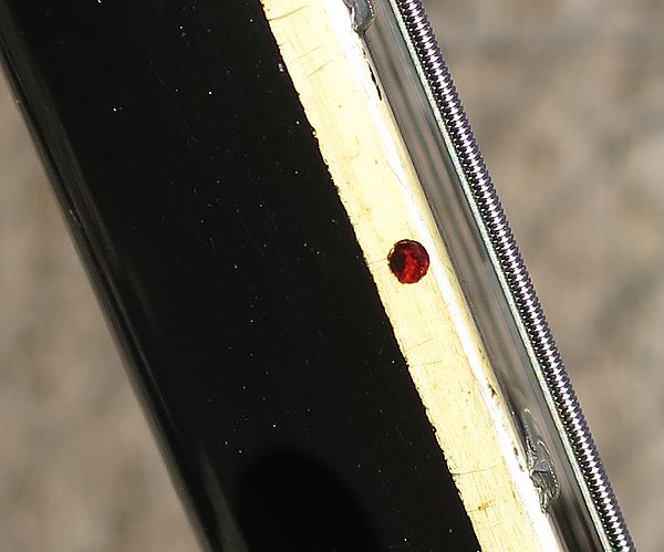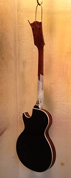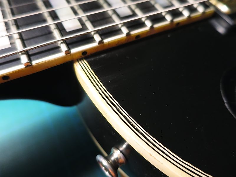 Estas guitarras originalmente estaban acabadas en laca de nitrocelulosa, lo que las hacía algo frágiles si se les daba mucho uso por lo que alguien decidió en algún momento de su historia el repintarla en poliuretano,que es un acabado menos noble pero más duradero. El puente original de esta guitarra es testigo de muchísimo trote por lo que seguramente fue por necesidad, no por gusto.