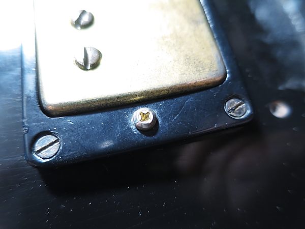 Curiosamente, los tornillos de anclaje de los marcos, siendo originales, son diferentes entre sí. Los de las dos primeras pastillas son para destornillador de punta plana y los de la pastilla de puente son tipo estrella (phillips), siendo esto normal en estas guitarras en esta época.