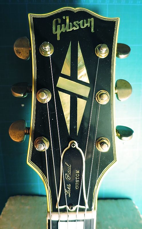 El clavijero es un Grover "Pat. Pend. U.S.A." Rotomatic 102-G (G de Gold) original, un clásico de las guitarras Gibson de alta gama de esa época.