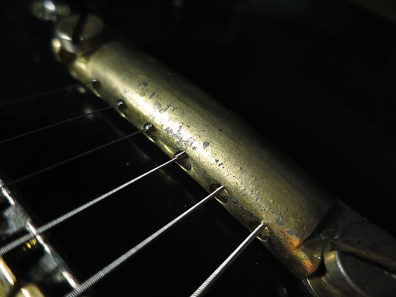 El puente es un "Tune-O-Matic" sin el "alambre" usado para evitar que se pierdan las silletas en caso de rotura de una cuerda, como eran los de esa época. Está bastante usado y corroído, pero no deja de ser un original del '59: