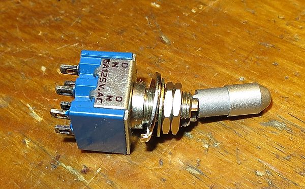 Ha dado la casualidad de que tenía un par de estos DPDTs especiales pero pueden ser algo difíciles de encontrar (Googlead por "lockable DPDT switch"). En su defecto, sería prudente utilizar un DPDT de corredera, que son más difíciles de conmutar por error que los de bola normales, o cualquier otro dispositivo que nos permita cierta seguridad.