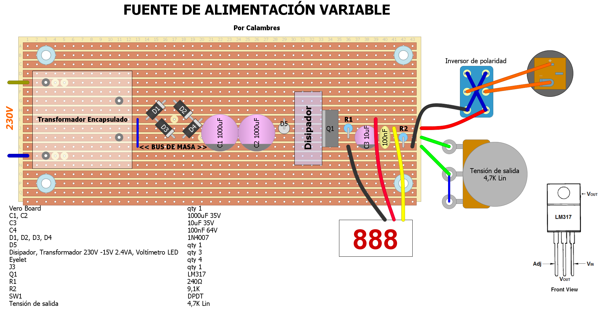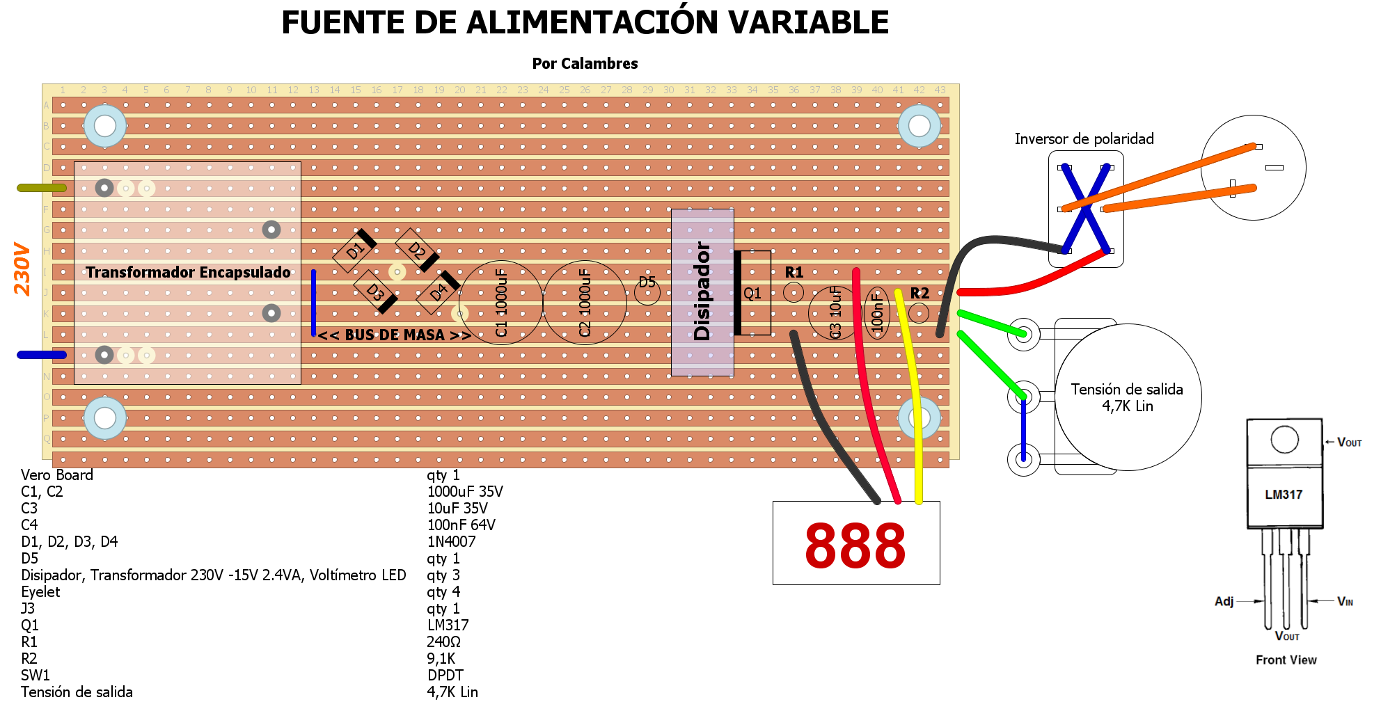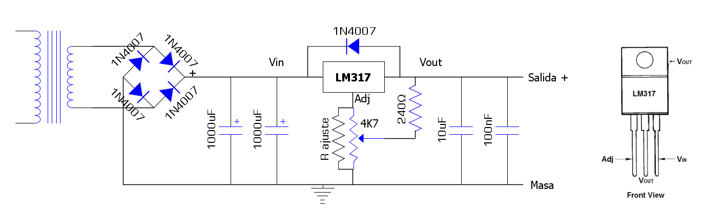 Aquí tenéis el simple esquema de esta fuente regulable: