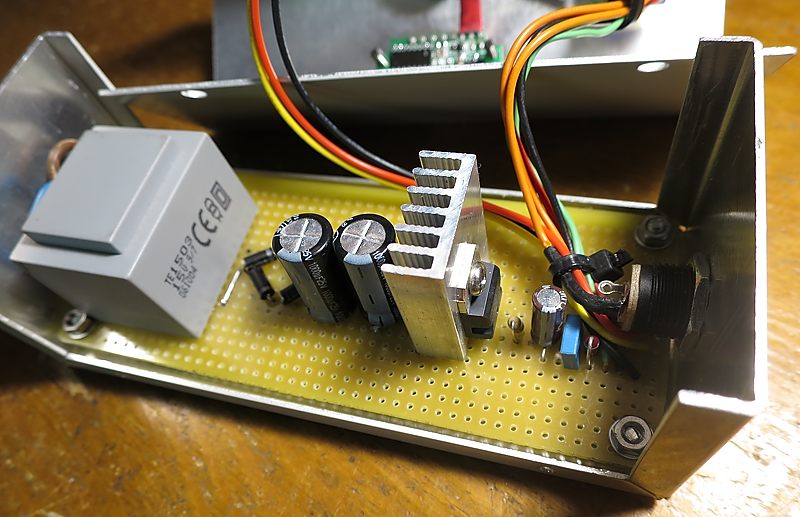 Es importante reseñar que el LM317 disipa calor. Bastante según el caso por lo que es imprescindible ponerle un disipador. Los LM317 en formato TO-220 como el que he usado son capaces de disipar un máximo de 1.5A y 20W, lo cual es muchísimo más de los 160mA que es capaz de entregar el transformador que he usado. Por eso no necesitaremos ventiladores ni disipadores enormes, pero aún así conviene poner uno por si acaso y no olvidarnos de usar pasta conductora entre el disipador y la aleta del chip. Si esto es, como ya he dicho, muy importante, aún lo es más el que tengáis en cuenta que dicha aleta del LM317 está conectada eléctricamente a Vout por lo que dicho disipador no debe nunca hacer contacto con nada más, y mucho menos con masa, a menos que uséis algún tipo de "mica" o cualquier otro aislante termoconductor entre disipador y chip, pero visto el poco rendimiento de corriente que va a tener este montaje, tampoco haría falta meterse en esos lios. Con el disipador "al aire" nos valdrá. Eso si, como no va a ir fijado a nada más que al LM317, recomiendo fijarlo a la placa mediante algún sistema como cola caliente, por ejemplo.