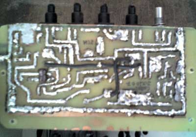 Después de tener la placa ya con las pistas bien definidas debemos de ir soldando poco a poco los componentes. Aquí os dejo un enlace con el layout, el esquema y la lista de componentes. El diseño de la placa reduce el cableado al minimo, algo muy interesante a la hora de dejar curioso el proyecto. Asi es como quedó el mío:
