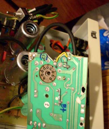 Al cambiar la placa de sitio he tenido que hacer otro agujero para meter la válvula de potencia EL-84: