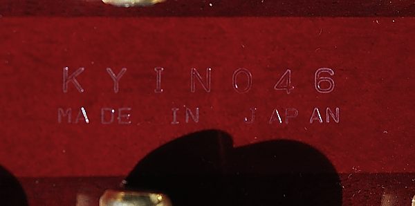 El mástil y la pala tienen unos ángulos similares a los Gibson modernos. En la trasera de la pala podemos ver el nº de serie: KYIN046 (el cero podría ser una letra "O") y el MADE IN JAPAN, todo impreso a presión sobre la madera, depués del acabado.