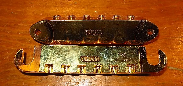 Ambas piezas, puente y cordal, llevan un logo YAMAHA en la parte inferior: