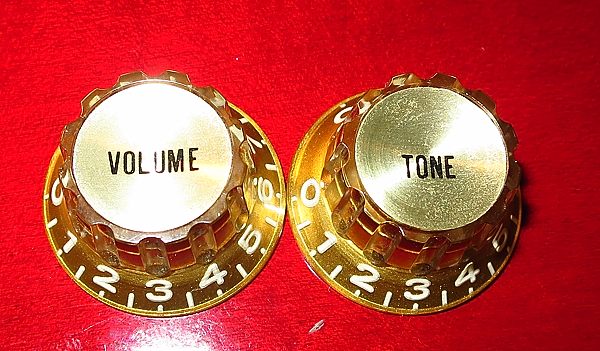 Los ejes de los potenciómetros son abiertos con estrías y llevan unos indicadores de posición con un "punto" en relieve al final de la punta para hacerlos más visibles. Los botones son de tipo Top Hat "Reflector" y sus ejes tienen 18 estrías. Están marcados con "VOLUME" y "TONE" según sea el caso.