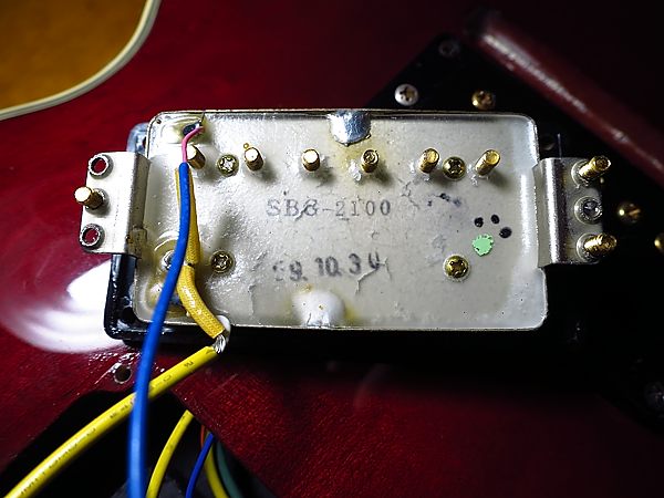 Los cableados son modernos y tienen una conexión coil tap que es aprovechada por la circuitería de los potenciómetros. Los soportes de las pastillas llevan el utilísimo sistema de tres tornillos con muelles que permite no solo ajustar la altura a la perfección sino que permiten el posicionarlas perfectamente paralelas a las cuerdas. Las carcasas exteriores van pintadas de negro dando un efecto muy chulo junto al dorado del resto del hardware.
