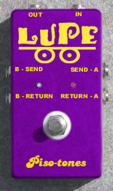 Por la misma razón si conectamos una guitarra al "Out", podremos conectar un ampli a cada "Return" y así podremos seleccionar uno u otro con un sólo golpe de pedal. En este caso, las "etiquetas" del pedal no serán muy descriptivas de la fincionalidad, pero podréis elegir otras etiquetas más descriptivas o, mejor aún, no pongáis etiquetas y poned "vías de colores" pintadas en la caja puesto que como hemos visto, el pedal es "bidireccional". Esto es, una auténtica "Caja A/B".