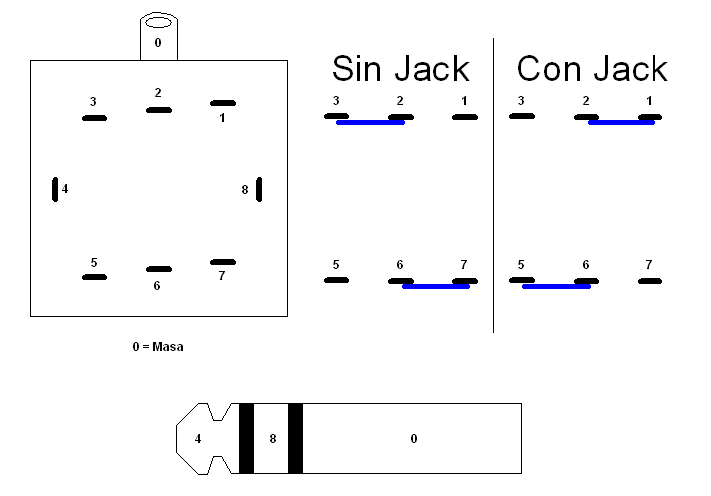 Fijáos en estos jacks. Son bastante comunes, de suficiente calidad, baratos y sobre todo muy versátiles. Son Stereo pero además llevan un DPDT incluido. Cada una de las 2 filas de 3 terminales es un circuito conmutador independiente de tipo SPDT. Si compráis de este tipo de jacks, al menos para los "Send", podréis darle una funcionalidad añadida. Fijáos en el siguiente esquema: