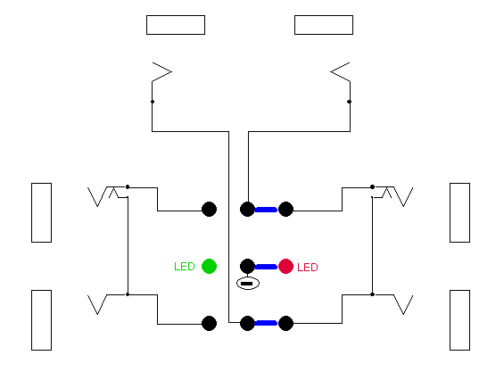 Como ya os he dicho antes, si no queréis poner LEDs podéis usar un DPDT. Simplemente ignorad la parte central del switch tal y como aparece en el esquema y olvidaos de la pila. Sinceramente os aconsejo que pongáis LEDs... será mucho más fácil de usar así.