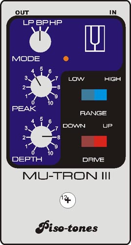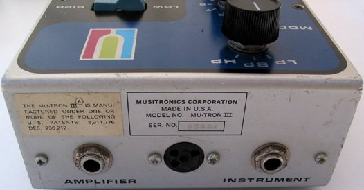 Es un efecto de los que se llaman "clasicos" y yo añadiría que ha alcanzado el estatus "de culto". Original de lo '70 es uno de los llamados "Envelope Filters" o Filtros de Envolvente, todo ello pasado por el tamiz tan especial que tenían los de Musitronics para hacer cosas diferentes. Sin embargo el encanto que tiene este pedal en concreto es que es algo más que eso. La primera vez que oí un Mu-Tron III original mi impresión fué de asombro. Acostumbrado a los Auto-Wahs al uso este es muchísimo más "orgánico" que ninguno de ellos. El citado artículo "The Technology of Auto-Wahs / Envelope Controlled Filters" de Mark Hammer y R. G. Keen tiene un detenido estudio del circuito del Mu-tron III.