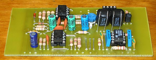 En cuanto a los integrados, R.G. Keen propone los TL072 si bien en el esquema original se citan los RC4558. Los primeros son FET y los originales eran CMOS. Yo he probado con los TL072, RC4558, RC4559 y TLC2272 (rail-to-rail. Ved proyecto Sans-Amp GT2) y no he conseguido hallar diferencias entre ellos. Al final he hecho caso a R.G. Keen y he dejado los TL072.