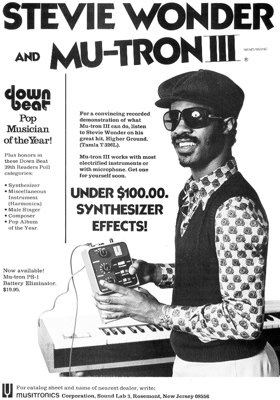 En la web actual de Musitronics podéis ver las patentes originales del Mu-Tron III así como unos divertidos anuncios publicitarios de los '70 con Stevie Wonder y un par de cosas más.