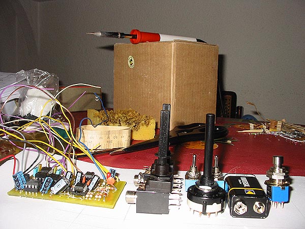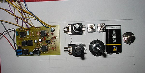 Cabe todo algo justo, pero cabe. Conmutadores de bola, switch de pie de los pequeños tipo Marshall y recolocación de mandos así como obligatoriedad de uso de una sola pila ya que no caben dos. En fin, que quede claro que cabe pero sinceramente os recomiendo la RI-415 que es la que al final hemos usado tanto psst como en Piso-tones: