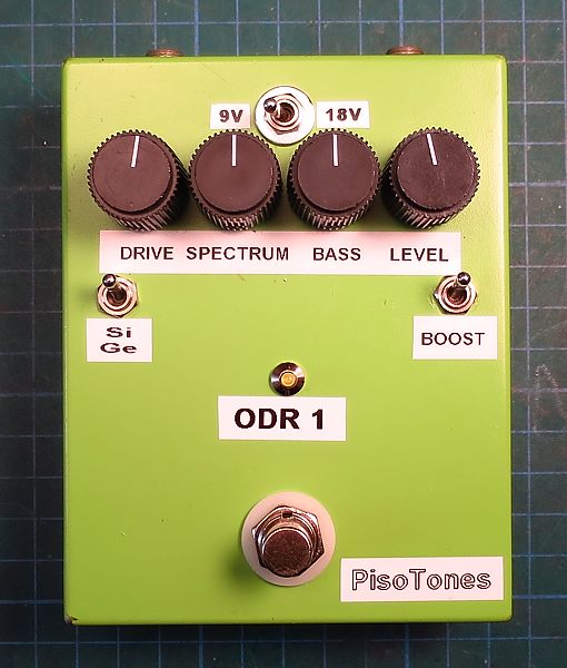 Esta no es la única diferencia en este circuito con respecto al de Nobels. Como véis dispone también de dos mini-switches, uno etiquetado como "BOOST" y otro como "Si/Ge" que más adelante describiré en detalle y de un tercero para cambiar la alimentación de pilas de 9V a 18V. Además este circuito prescinde del farragosísimo sistema original de buffered bypass, complicado en exceso en mi opinión, que no es del todo transparente en bypass y que aquí hemos dejado como true bypass para evitar líos y simplificar muchísimo el montaje. Como curiosidad, el ODR-Mini sí que es true bypass.