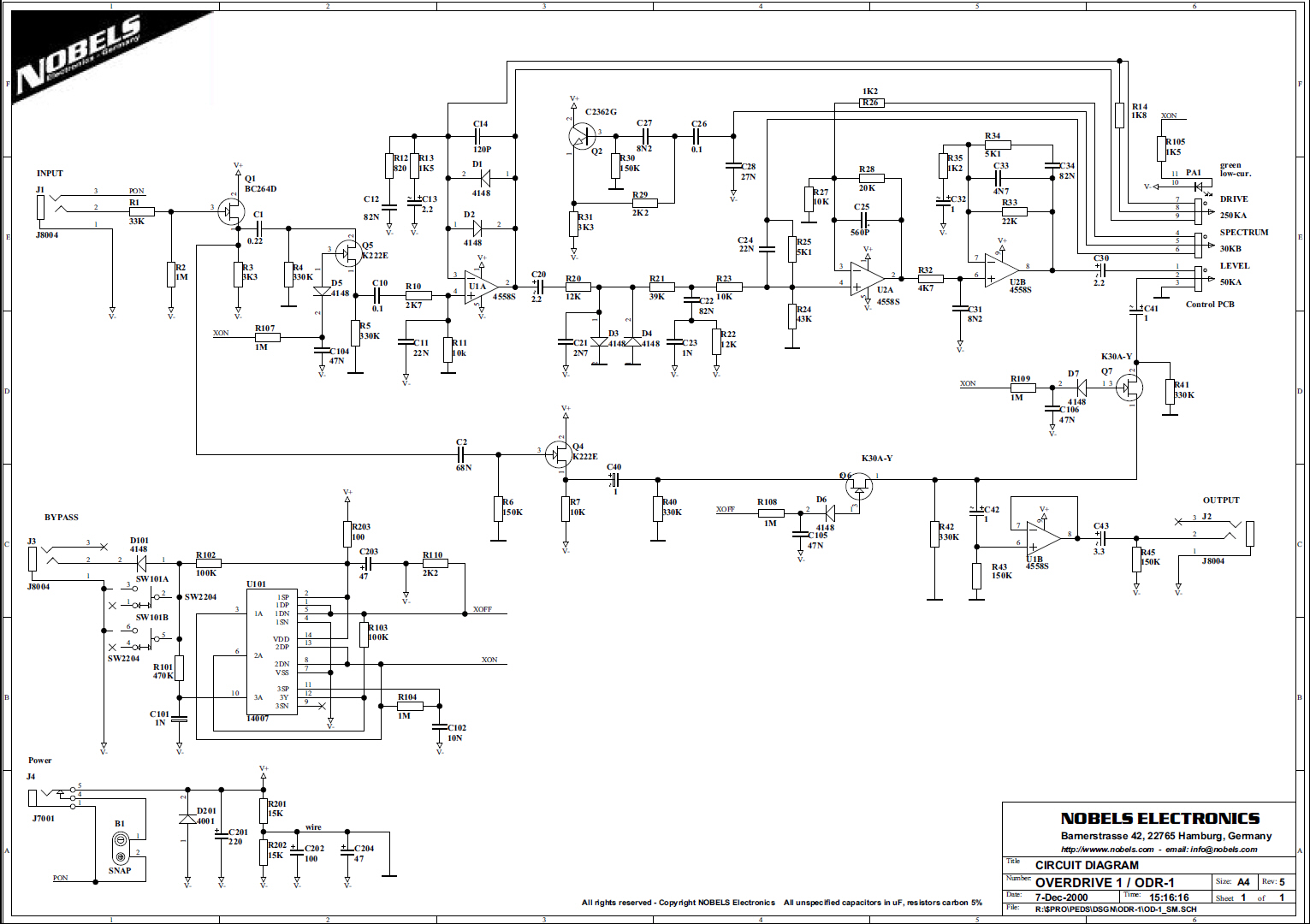 Como podéis apreciar es un esquema un tanto complejo. En él, para referencia, he remarcado en recuadros rojos todo lo que no coincide de algún modo con el esquema original del Nobels ODR-1, el cual era mostrado hace tiempo en la propia web del fabricante pero que parece que ya no está disponible. Os lo pongo a continuación como referencia: