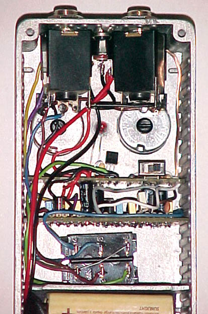 El pequeño conmutador se ve claramente en la segunda placa auxiliar cerca de los potenciómetros, conteniendo el conmutadorcillo y el circuito Millenium-2 que, como ya dije antes, es innecesario pues podemos poner un pulsador de pie del tipo 3PDT.