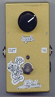 La segunda modificación es la más interesante. Se me ocurrió al ver algo parecido aplicado a un EH Small Stone. Se trata de instalar un simple interruptor (S2) entre R7 (señal sin modificar) y la base de T1 (que es donde llega la señal desfasada a través de R8). Cuando el interruptor está cerrado, tenemos el Phase original. Cuando lo abrimos, C se separa de D, con lo que la señal que se aplica a la base del transistor de salida es únicamente la que viene desfasada. Os juro que vale la pena. Esta modificación se la he hecho incluso a mi Phase 90 original, pedal que amo con ternura y que me costó 20.000 pelas de vellón allá por el año 85 de nuestra era. La señal desfasada ES UN VIBRATO. No es un trémolo. El trémolo varía rítmicamente el volumen de la nota. Aquí varía la afinación. Lo podéis oir en los ejemplillos que, con mi habitual cara dura, he puesto al pie del artículo.