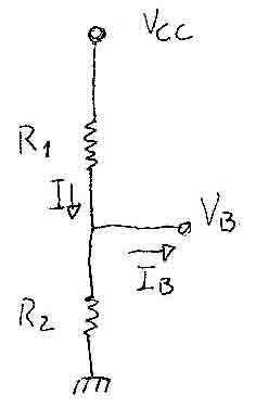 Si suponemos que la corriente de base es mucho menor que la corriente que circula por el divisor de tensión, podemos simplificar la rama R1-R2 de la siguiente manera: