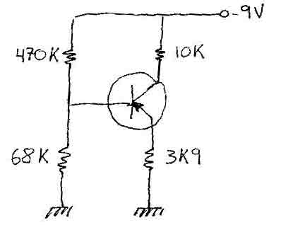 Ojo, estas tensiones y estos valores de resistencia son orientativos. Dependiendo del comportamiento del transistor, pueden haber puntos de trabajo "alternativos" en el que el efecto suene bien. Si tienes un osciloscopio, úsalo para ver la señal al mismo tiempo que escuchas el sonido del circuito. Si no lo tienes, usa la oreja para ajustarlo donde suene mejor. Y punto. No te comas el coco con ajustes ultra-precisos o intentando llegar a los valores del circuito original. La única prueba válida es el sonido. Los transistores de germanio son componentes muy caprichosos.....