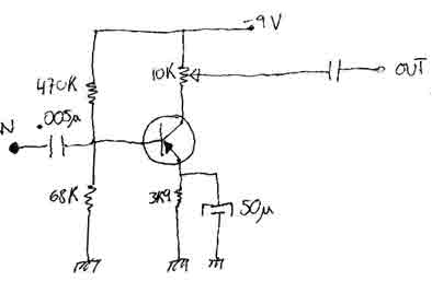 Sencillez: Tanto en el aspecto constructivo como en el operativo. Un jack de entrada, un jack de salida, un control boost, y un conmutador de pie son todos los elementos visibles y utilizables en el aparato. Hemos prescindido de señalización LED por el simple hecho de que este efecto no hace falta "señalizarlo" para saber que está funcionando. Cuando está conectado, se nota que lo está. No hace falta que una lucecita lo indique. Si quieres ponérsela, es opcional. Yo lo prefiero así. También he prescindido del conector de alimentación exterior. El consumo total del circuito es tan pequeño, que una sencilla pila (de carbón, por supuesto), nos dará muchas horas de servicio sin problemas.