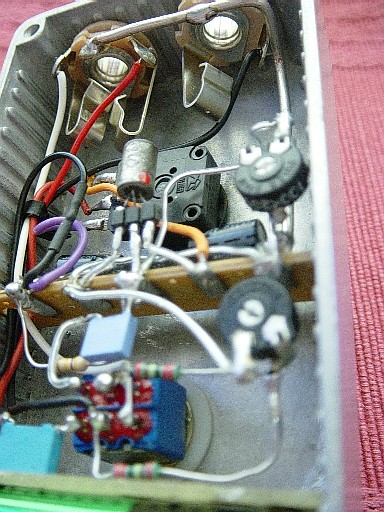 En esas páginas encontraréis el método de ajuste de Bias que os contaba antes. Como ya habréis leído en el segundo e-mail a Rubén, al final terminé ajustando "de oreja". El caso es que los ajustes que propone R.G. Keen son bajo el supuesto de que se ha conseguido un transistor de características similares al "OC-44" y con bajo nivel de fugas. Mirad en la página del FuzzFace para averiguar cómo detectar esas fugas. Si no podéis conseguirlo, intentad dejar "Rb1" a su valor original (68K) y sustituid "Re" (3.9K ó 4.7K) por un trimmer de 5K y ajustad a oreja. Marcad con rotulador la posición del valor 2.5K y no bajéis de ahí.