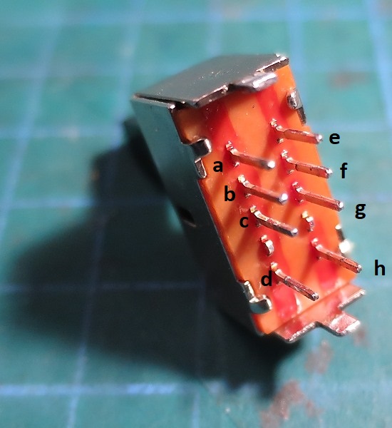Para poder hacer la modificación lo que hice fué doblar "hacia afuera" el terminal "d" de modo que al resoldar el conmutador de nuevo en su sitio, esta patilla quedase fuera de su ojal y por lo tanto del circuito.
