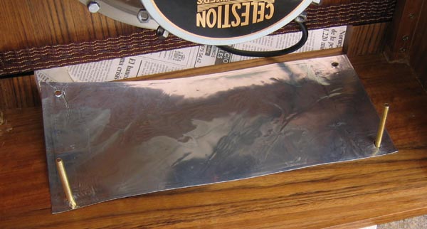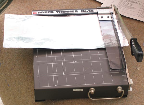 Decidí añadir un "invento" para apantallar en lo posible el circuito. Se me ocurrió que, como los chasis siempre llevan una "cara" abierta, podría ser fuente de entrada de interferencias externas, así que me las apañé para fabricarle un apantallado casero. Utilicé como material una hoja de aluminio sacada de un molde de cocina de esos de usar y tirar "Albal". Es una hoja mucho más gruesa que la típica de rollo de cocina.