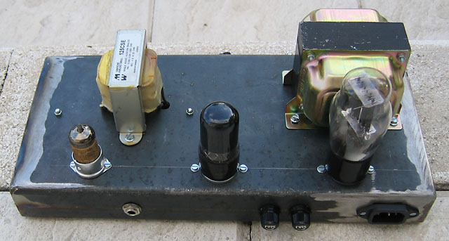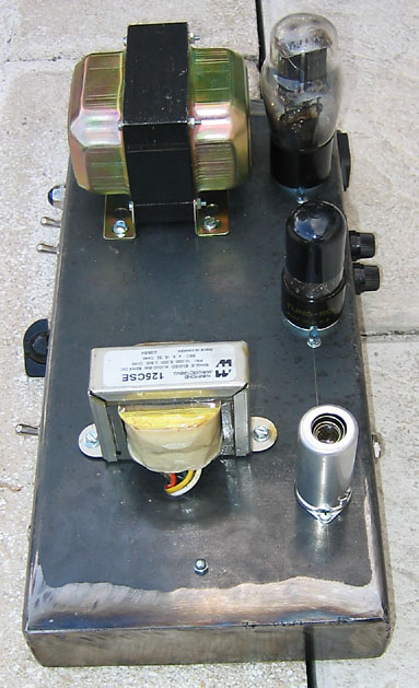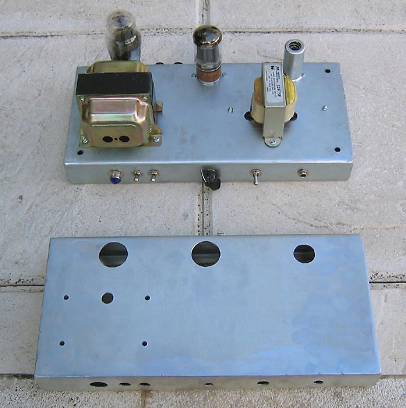 Como véis, las medidas de nuestro Champ son mayores (excepto en profundidad) que las del original. Esto es a causa de los transformadores más grandes que usamos y de que íbamos a usar un mueble para un altavoz de 12" en el que el chasis original quedaría demasiado pequeño.