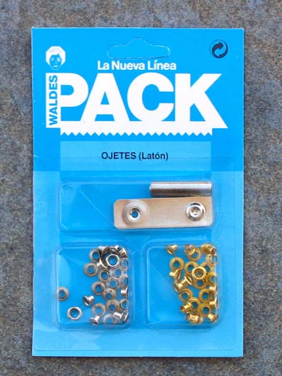 ...aunque hay unos "blisters" de ojetes que ya traen su herramienta de colocación.