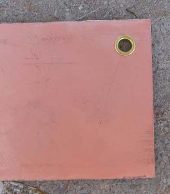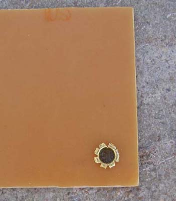 Prueba de colocación de ojete en placa. Aquí se aprecia que aún llevaban cobre en un lado.