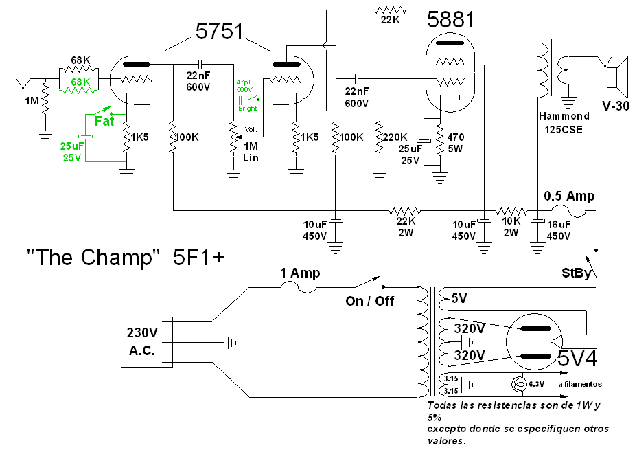 Una vez hecho el circuito y probado por primera vez, esos condensadores almacenarán la tensión que reciben de la válvula rectificadora... incluso con el amplificador apagado y desenchufado, no lo olvidéis. No la almacenarán para siempre pero si que pueden tener mucha persistencia por lo que lo mejor es no andarse con bromas y acostumbrarnos a descargarlos siempre antes de cualquier maniobra dentro del chasis.