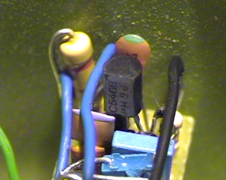 Tiene 3 transistores, de silicio normalitos, 2 PNP y uno PNP. Tengo que probar a ver que tal funciona con transistores de germanio. Ya os contaré.