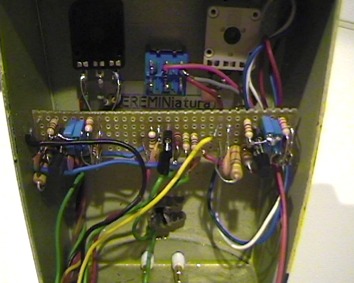 Esto quiere decir que ahora tengo dos aparatejos de estos, uno digamos vintage y otro actual. He hecho el circuito (esquema) en bonito, está construido y listo para darlo a conocer aquí. El nombre que le he dado al aparato era THEREMINi pero como ví después, existe un soft que se llama así por lo que lo he cambiado a THEREMINiatura. Dejaremos lo de THEREMINi como abreviatura.