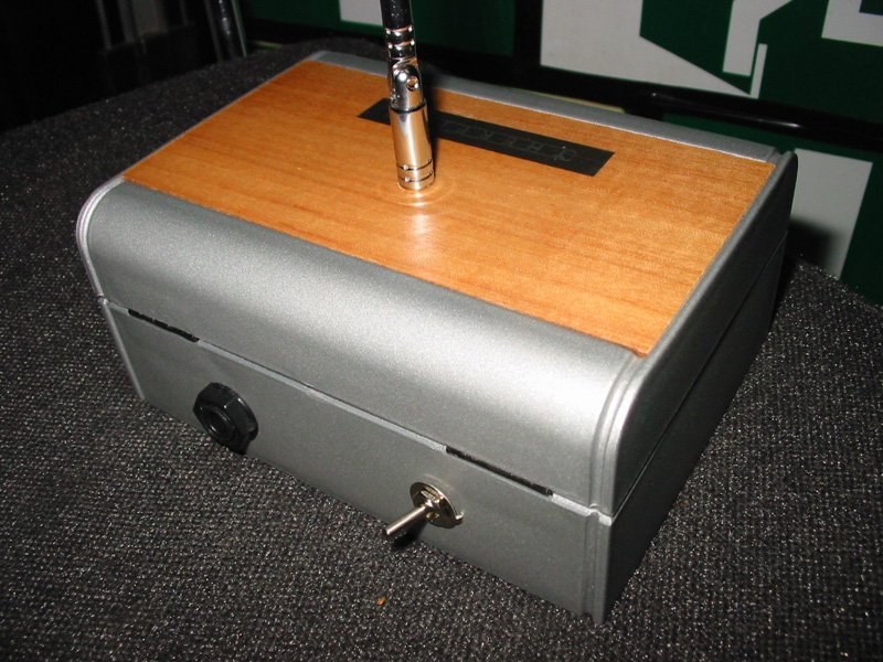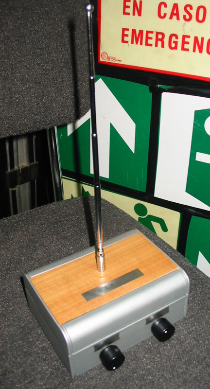 El jack de salida es de "nivel de línea" por lo que lo deberéis enchufar a un amplificador, pero hay un truco curioso para evitaros este paso si no queréis. Al estar basado en osciladores de alta frecuencia, dicha oscilación puede ser captada por unreceptor de radio. Para ello tendréis que ponerlo cerca de una radio de AM y buscar en el dial para sintonizar la frecuencia de oscilación del Theremin. El caso es que se sintoniza de maravilla y al actuar sobre la antena lo podemos oir perfectamente por la radio. Curioso... ¿eh?.