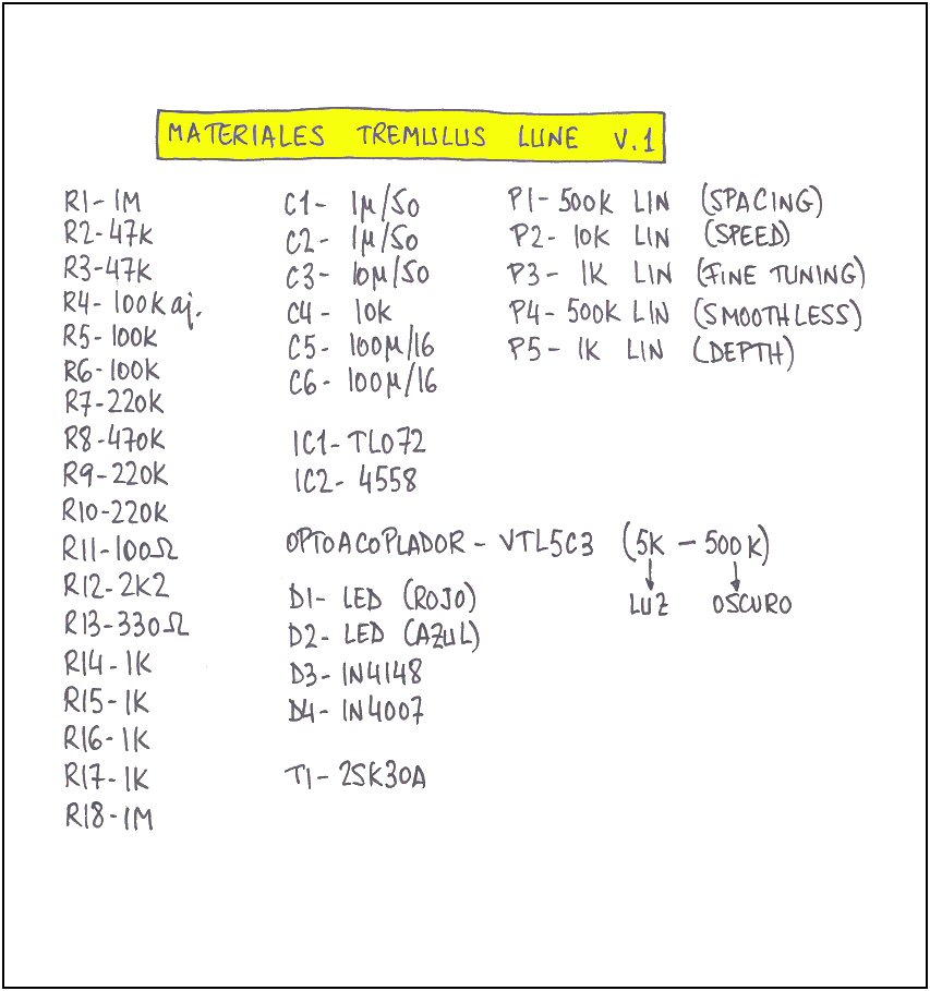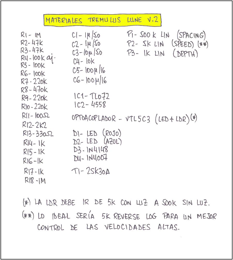 Lo primero que hay que decir de este aparato es que lleva un componente difícil de conseguir. Difícil, pero posible, así que no os vayáis todavía. Se trata del optoacoplador VTL5C3. Yo los he conseguido en www.musikding.de que, como ya he comentado muchas veces, es el paraíso de los constructores de pedales caseros. El VTL5C3 lleva un LED y una LDR (light depending resistor), esto es, una fotorresistencia cuyo rango está comprendido entre los 500K en ausencia de luz y los 5K con el led encendido. Lo comento porque es posible la realización casera de este componente, como he leído por ahí, a base de maña y paciencia.
