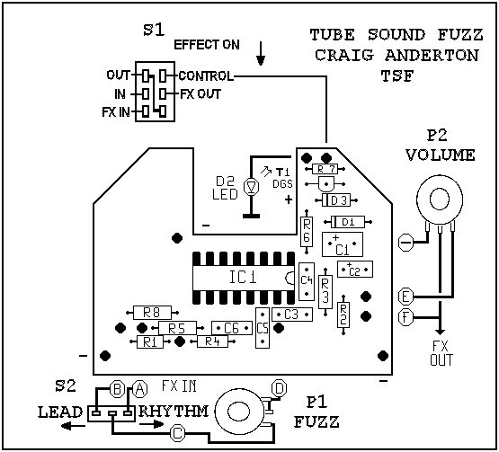 Hace diez o doce años cayó en mis manos un pedal de overdrive de color naranja llamado "Red Llama". Lo probé y sonaba a gloria. Una saturación suave y muy limpia. Tenía un aspecto de artesanal que tiraba de espaldas. La placa del circuito parecía haber sido diseñada para otros usos ya que presentaba muchas pistas y orificios sin componentes. Hablando de componentes, había bien pocos: un circuito integrado, 6 ó 7 resistencias, algunos condensadores y poco más. Su dueño lo había traído de los EEUU y allí le había costado, según me dijo, unas 40.000 pelas. Yo no lo había visto antes ni lo he vuelto a ver después en ninguna tienda. El caso es que el circuito integrado había sido rascado y no se veía su nomenclatura. Guardé el esquema hasta donde había extraído y el resto de dibujos que me había hecho y me olvidé del asunto hasta que encontré en la Red (bendita Internet) un esquema dibujado por un tal Justin Philpott. Se titulaba Tube Sound Fuzz y llevaba un circuito integrado de 16 patas con un montón de ellas conectadas a masa, cosa que me llamó la atención. Se trataba de un CD4049UBE, un Inverter Hex Buffer con tecnología CMOS de los de a duro el kilo. Se me encendió la luz. Rápidamente busqué en mi carpeta de proyectos fallidos y comparé el esquema del Red Llama con éste. Eran muy muy muy similares. Aparte de cambiar levemente el valor de algún componente, el circuito era el mismo. Parece ser que el diseño original es de Craig Anderton del que he encontrado bastantes artículos en Internet, algunos de ellos basados en este mismo circuito integrado.