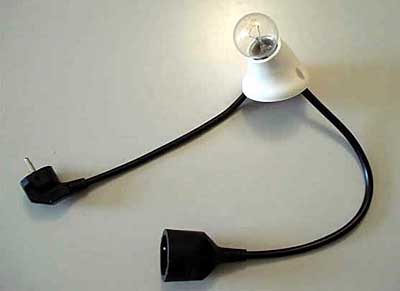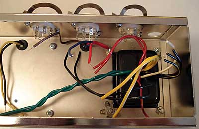 Una bombilla de 60W en serie con un alargador. Se usa para comprobar cortocircuitos en el ampli, si la bombilla luce a tope es que tenemos un problema. En este punto estamos preparados para encender el ampli, una vez que hemos comprobado todo varias veces. Sin válvulas instaladas, y con el ampli enchufado a la bombilla ponemos el ampli en ON. El piloto del ampli debe encenderse, y la bombilla debe lucir a medias.