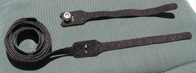 Sin embargo no me quedé contento del todo con el invento y me puse a buscar por ahí. Encontré unas piezas que son absolutamente ideales para esto. En serio que parece que las hayan hecho aposta para esta función. Son unas bridas de Velcro diseñadas para sujetar cables en los racks de ordenadores "de los gordos". El tamaño y disposición de esas bridas es asombrosamente justo lo que necesitamos para esto.